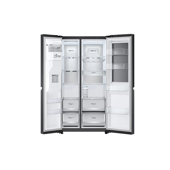 LG Side-by-Side müasir və zərif qara rəngdə təqdim olunur ki, bu da mətbəxinizə dəbli və incə bir görünüş verəcək. Gizli dəstəklər lakonik və minimalist bir dizayn yaradır, soyuducunun hamar xətlərini vurğulayır. Şüşə rəflər məhsulların etibarlı yerləşdirilməsini təmin edir və asanlıqla təmizlənir, kameraların içərisində gigiyenanı qoruyur.